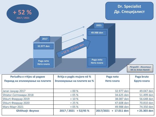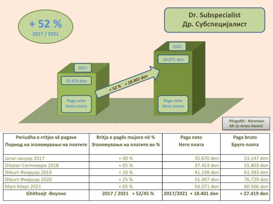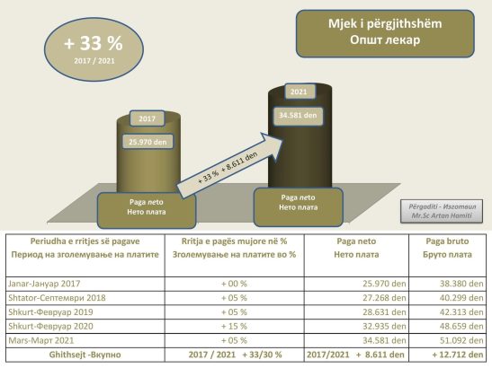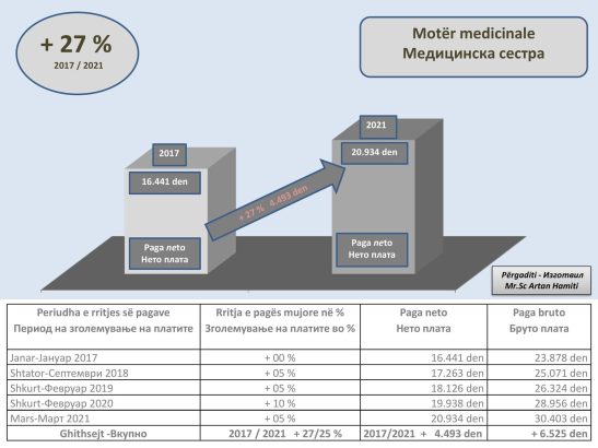 Pasi që punoj në shëndetësi në sektorin e financave ju dëshmoj se e njejta situatë e trendit të rritjes së pagave mujore neto dhe bruto shënon rritje po thuaj se edhe te i gjithë personeli shëndetsorë dhe atë administrativ: