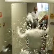 Disa shkencëtarë punuan në laborator për disa ditë me radhë, për ta krijuar një top ajror dhe për ta shkrepur në gjoksin e kolegut të tyre.
