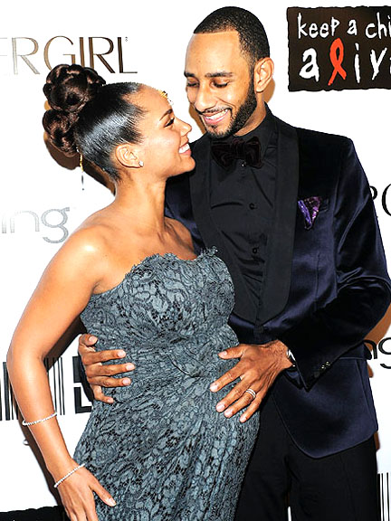 Këngëtarja shtatzënë Alicia Keys (e veshur me një fustan të markës Dolce & Gabbana) dhe i dashuri i saj i ri Swizz Beatz ndajnë ca momente ‘prekëse’ gjatë ballos bamirëse të këngëtares “Keep a Child Alive Black Ball” në New York.